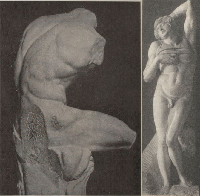 Pour le traitement des corps des damnés, Delacroix s'inspire d'œuvres anciennes qu'il a pu contempler, comme le Torse du Belvédère conservé au musée Pio-Clementino (au Vatican) et dont il existe un moulage à Paris, ou les Néréides peintes dans la partie inférieure du Débarquement de la reine à Marseille de Pierre Paul Rubens. L'influence de Michel-Ange est évidente aussi dans la torsion et le rendu de la musculature à l'instar du corps allongé, les bras levés, qui rappelle l'Esclave mourant exposé au Louvre.